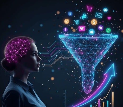 Conversión 24/7 (Funnels & Chatbots): Implementamos embudos de venta automatizados y agentes IA de conversación que trabajan sin descanso, asegurando que cada lead sea nutrido y convertido en cliente potencial al instante, incluso fuera del horario laboral.
